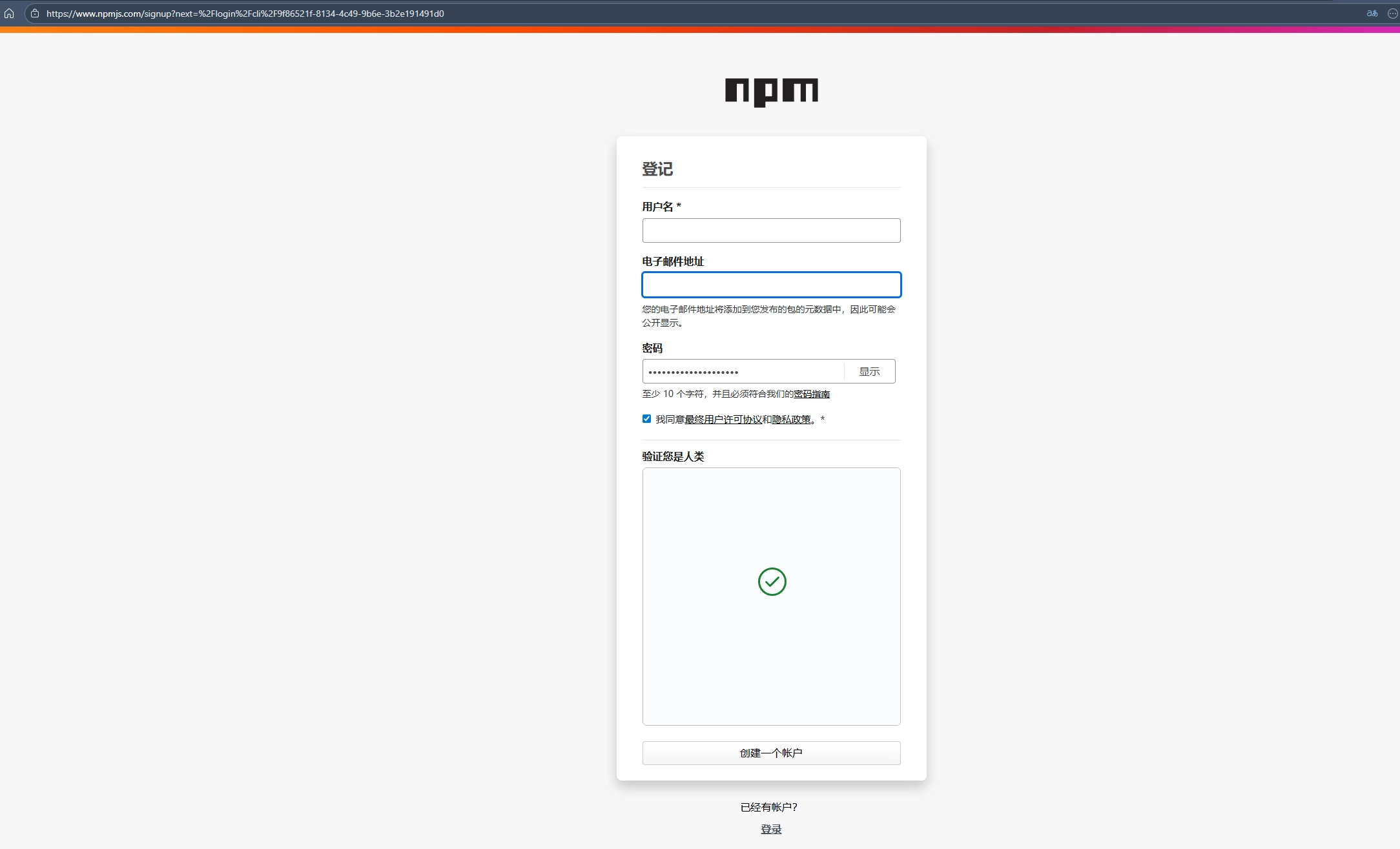登录邮箱,找到 npm 发送的验证邮件,点击链接完成验证。