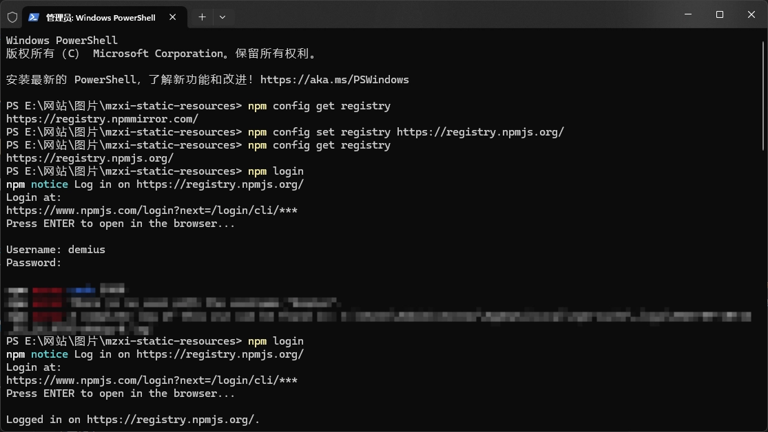 若显示Not found,则表示包名可用;若显示已有信息,需更换包名(如添加前缀@yourname/mzxi-static)。